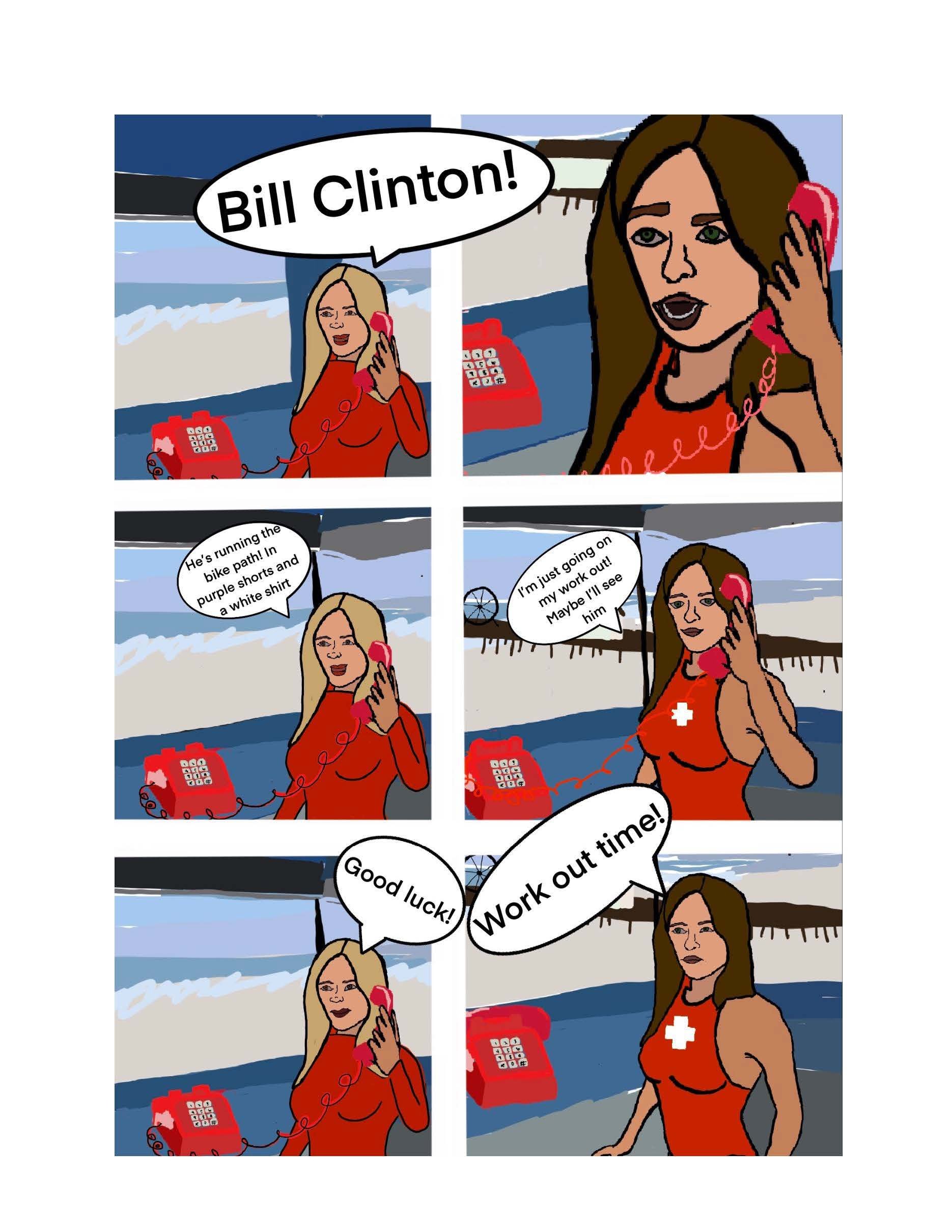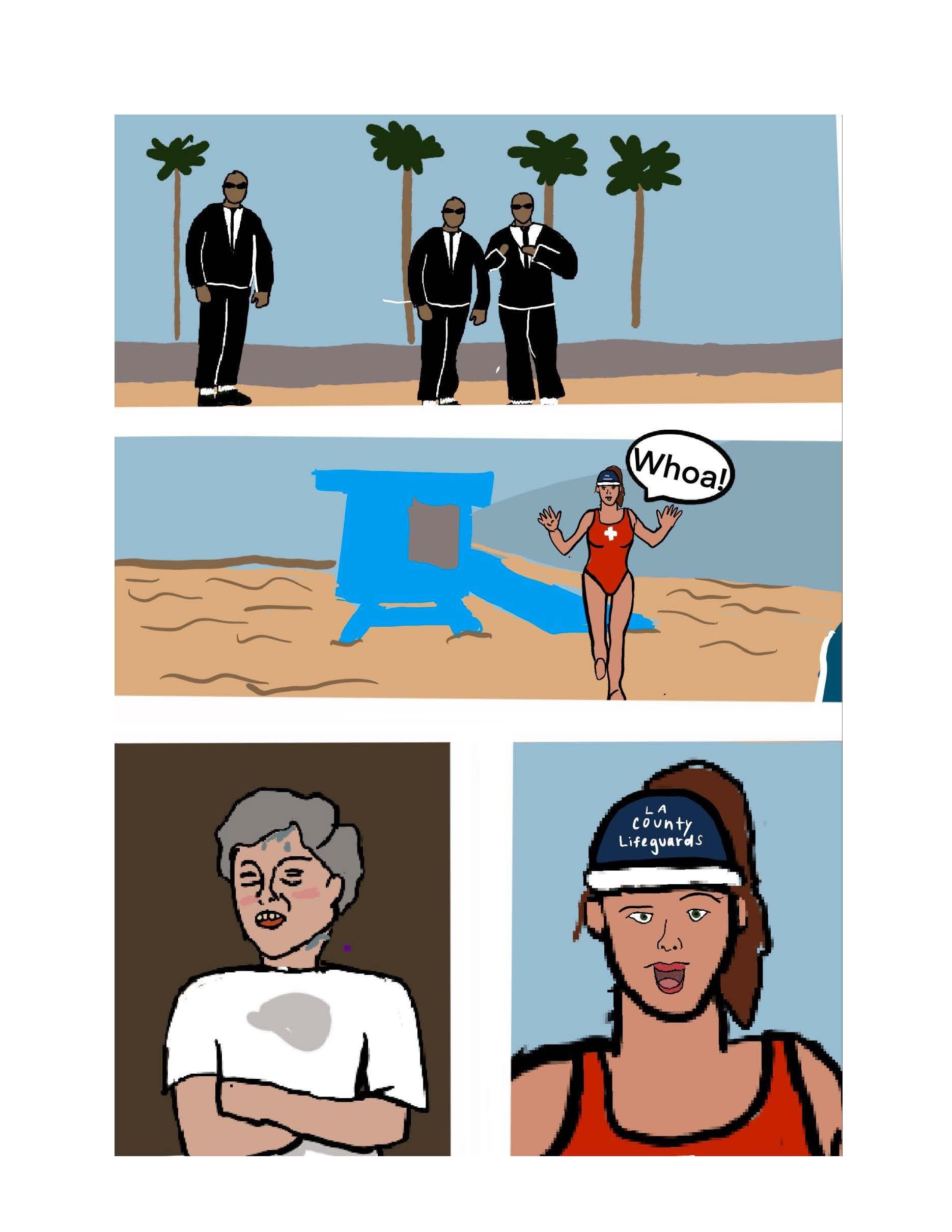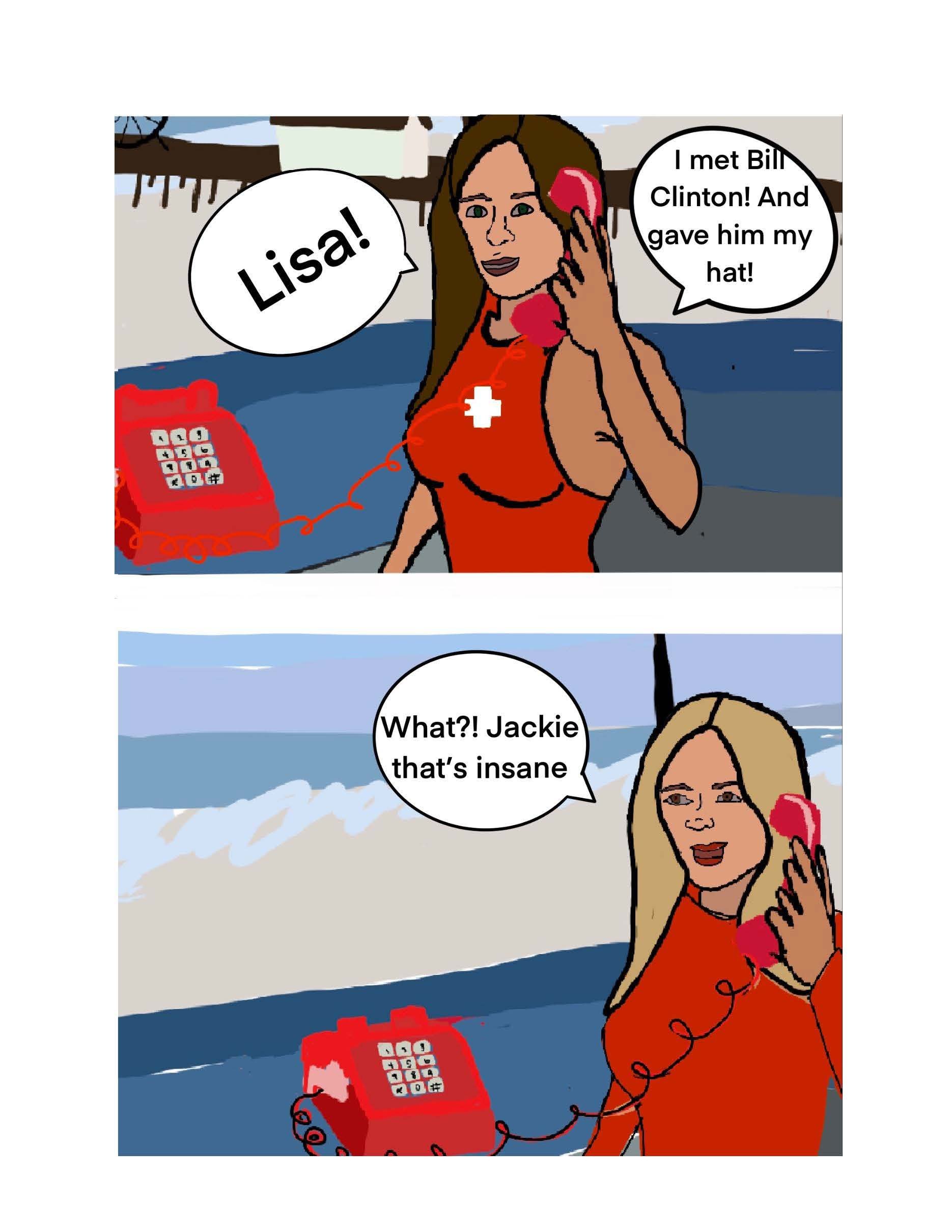 She was a lifeguard in LA county during the 90s, and when of her best stories is when she was working the beach during Clinton’s election. The comic is my adaption of this story.