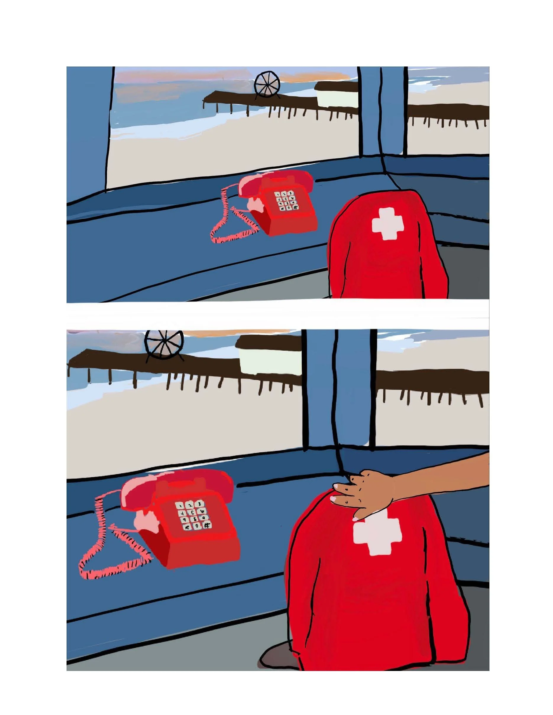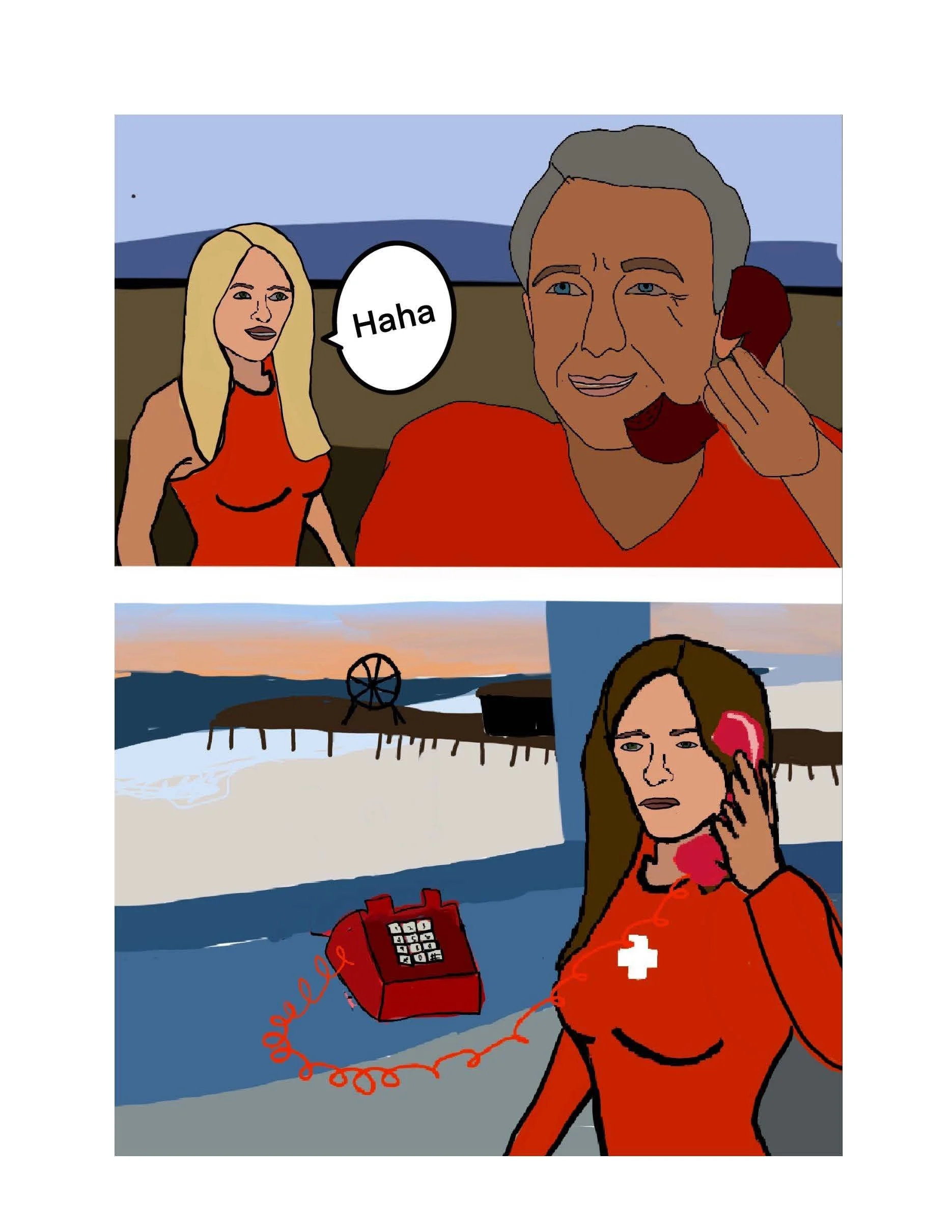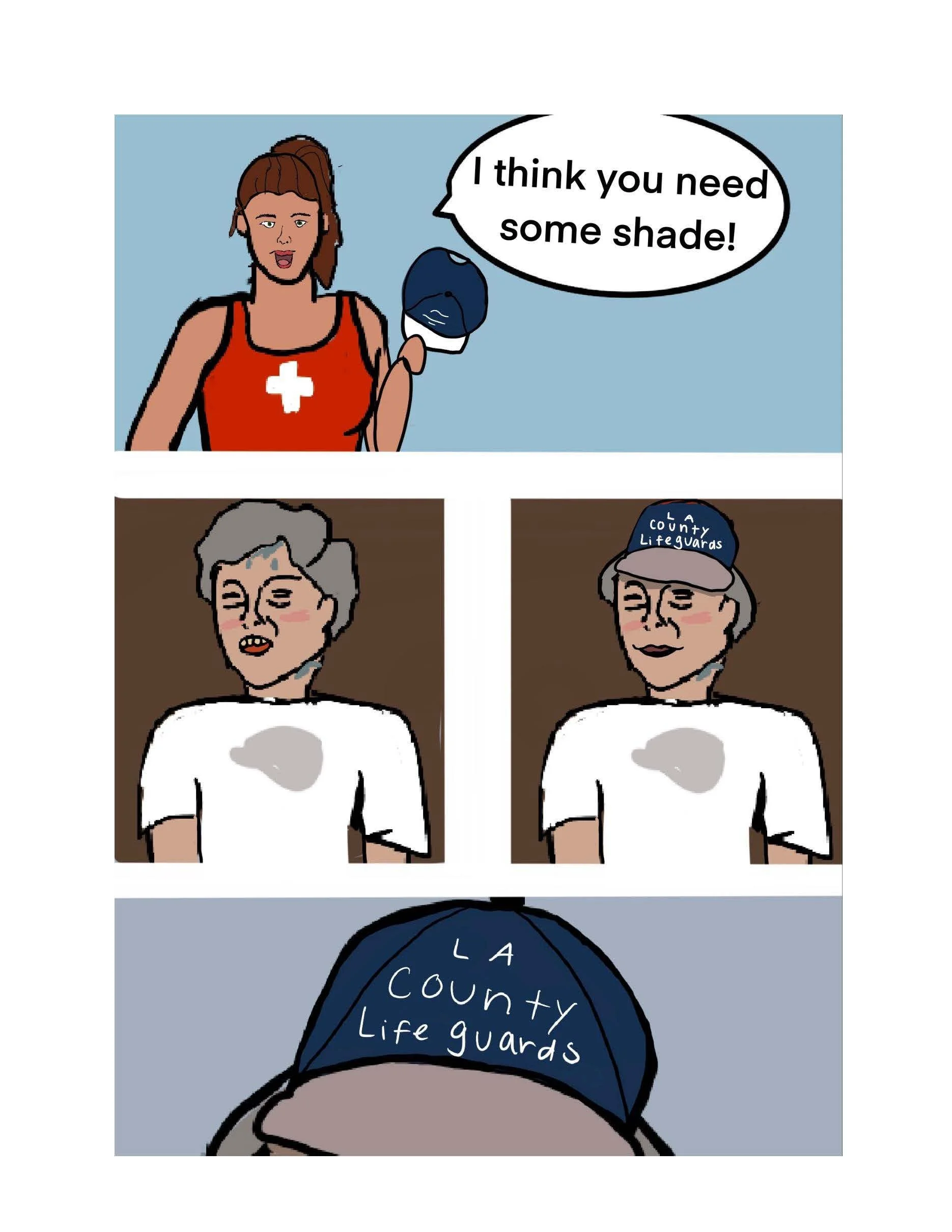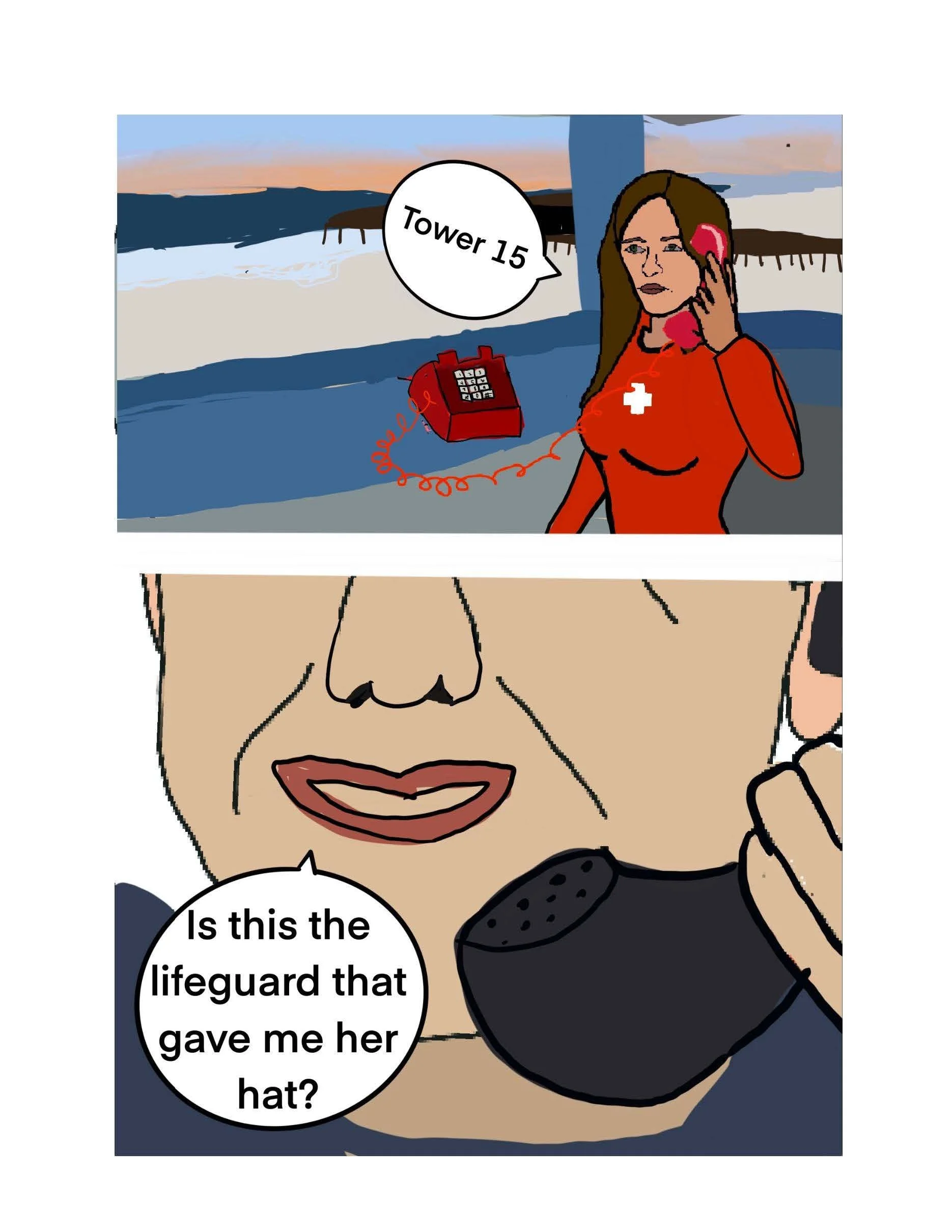 She was a lifeguard in LA county during the 90s, and when of her best stories is when she was working the beach during Clinton’s election. The comic is my adaption of this story.